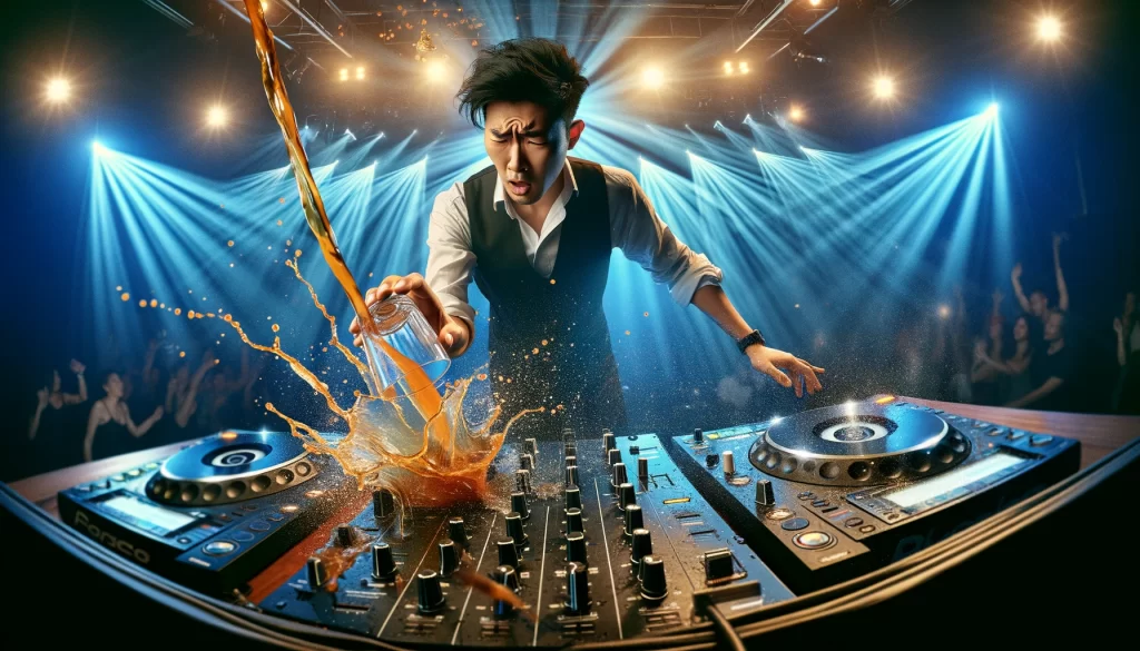 Every piece of a DJ’s setup, from turntables to laptops, is vital. It’s more than just equipment; it’s the tools of our trade. A single spill could spell disaster: malfunctioning gear, costly repairs, or the need for complete replacements. Such mishaps can interrupt your set and damage your reputation. It’s a risk no DJ wants to take, especially in smaller venues where the available setup might be all they have. Caution is key.